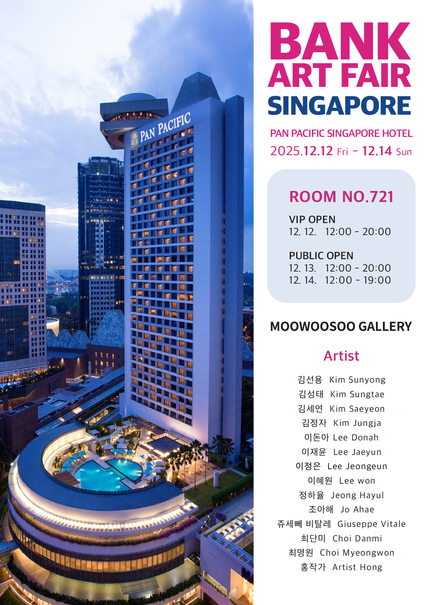 The 16th Bank Art Fair will be held from December 12-14, 2025, on the 6th and 7th floors of the Pan Pacific Singapore Hotel.